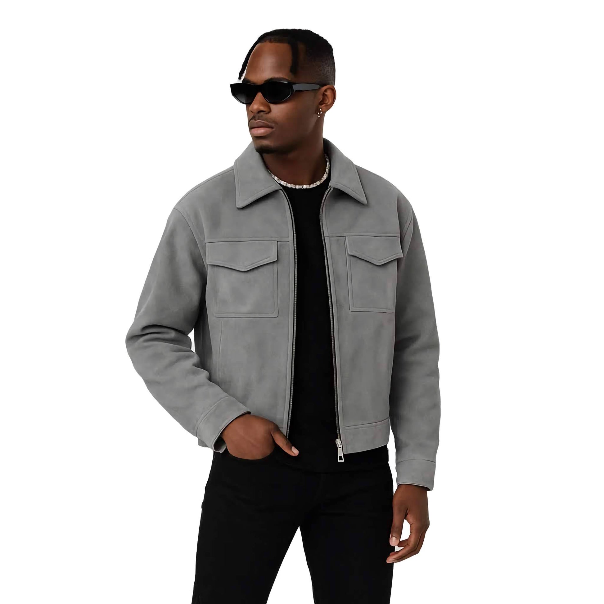 Graue Lederjacke für Herren – Clean Design mit Brusttaschen
